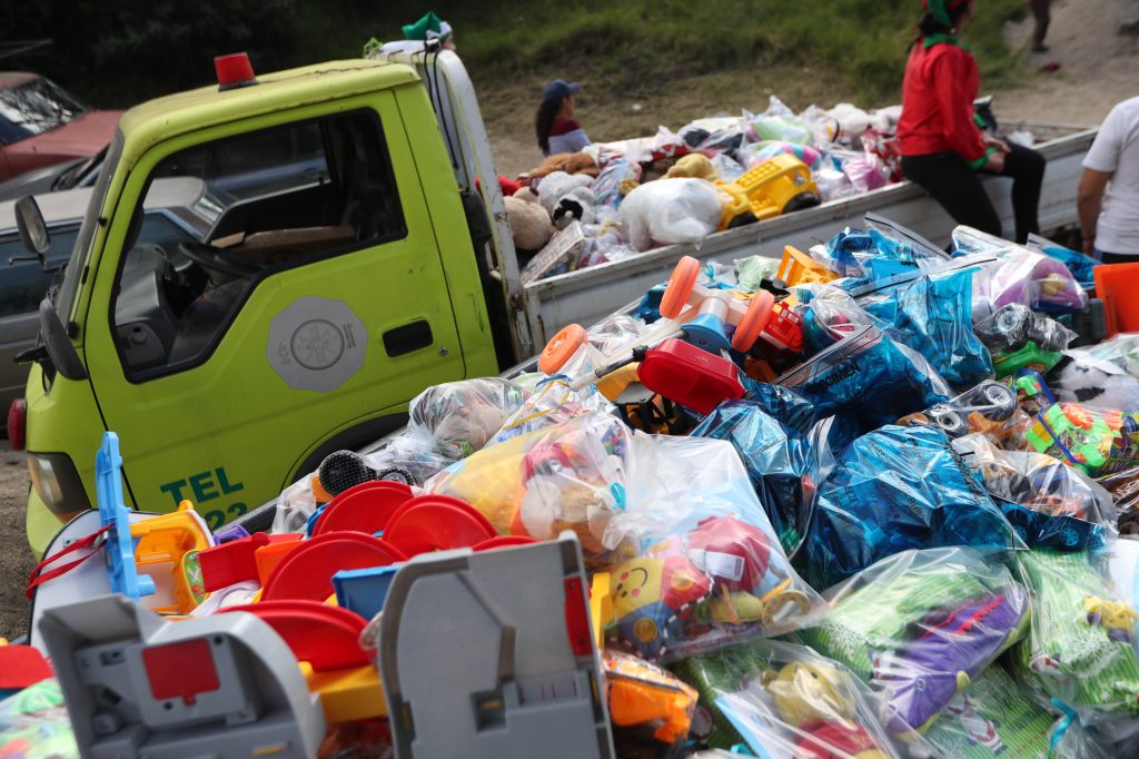 Karen Mejía, una de las jóvenes que colaboran con la actividad, dice que son bastantes los niños que se benefician con los regalitos que les entrega Santa.