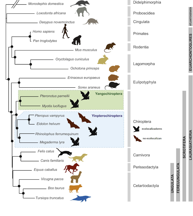 Los murciélagos, un grupo monofilético muy antiguo (Figura 4), han desarrollado adaptaciones únicas que contrarrestan la inflamación. La inflamación es un impulsor de múltiples patologías relacionadas con la edad, que incluyen enfermedades cardiovasculares, cáncer, enfermedad de Alzheimer y diabetes.