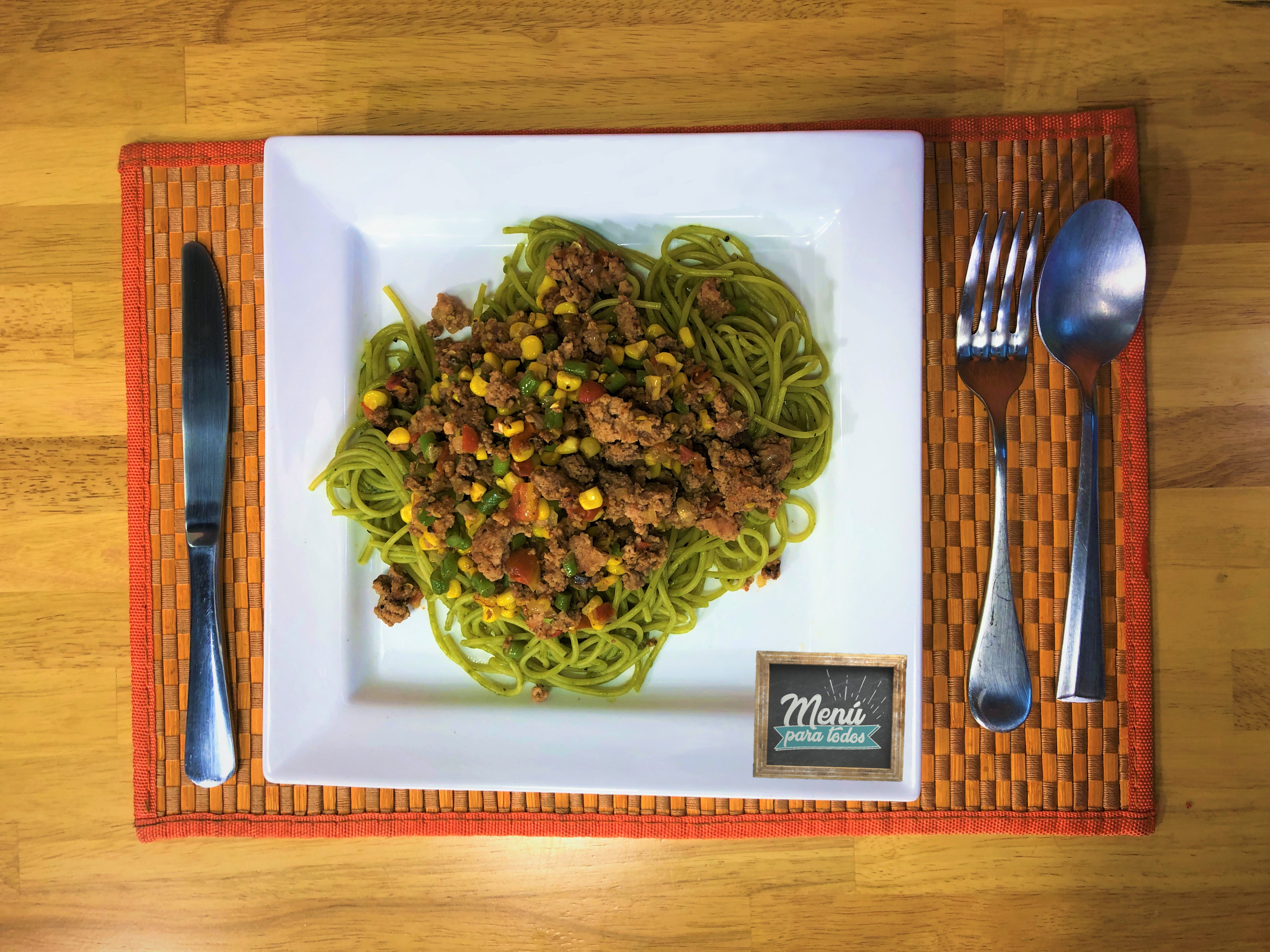Te compartimos una receta para preparar pasta con carne molida y vegetales con un toque especial y lleno de color. Es muy fácil de preparar y deliciosa. Ideal para una comida en familia.