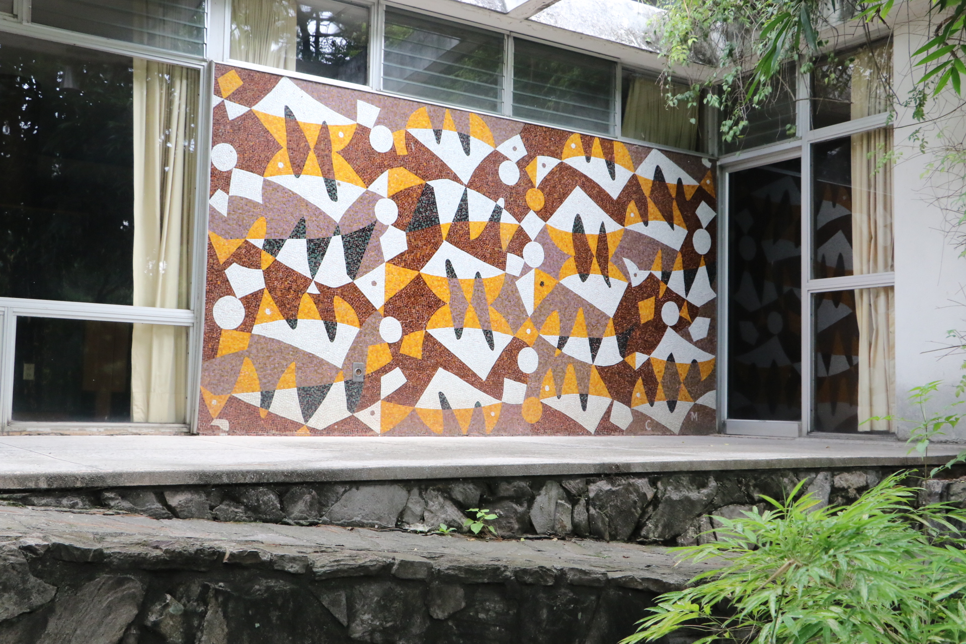 Los Murales fueron construidos con material italiano, el artista realizó todo un trabajo artesanal y solicitó a Italia los mosaicos, el procedimiento de su elaboración lo aprendió en 1950, cuando estudió en Venecia. Este Mural ubicado en el interior de la vivienda, es un bello mosaico que ensambla los colores blanco, negro, café y vino tinto.
