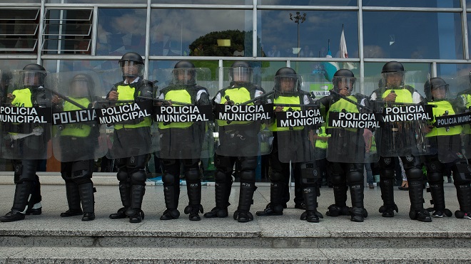 El enfrentamiento entre vendedores informales y las fuerzas del orden de la Municipalidad comenzó al medio día del jueves casi frente a la sede del Ministerio de Gobernación.