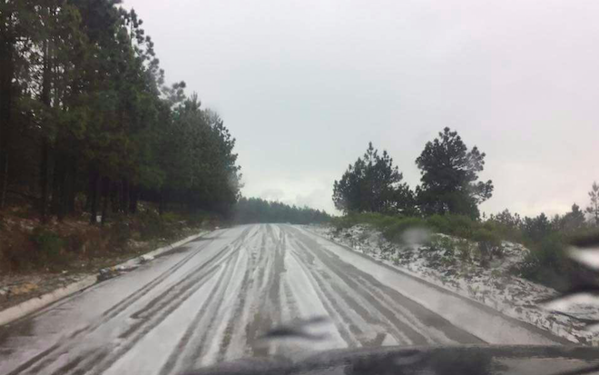 Como si se tratara de una carretera de esas de series de rutas de riesgo. Así lucía San Mateo Ixtatán, Huehuetenango tras caída de granizo.