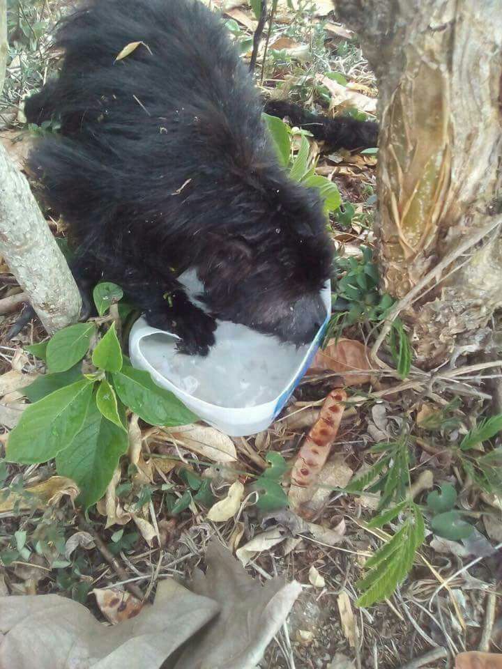 El animal estaba arriba de un árbol asustado y amenazado por el fuego cuando fue encontrado, cuando logró bajar le ofrecieron agua.
