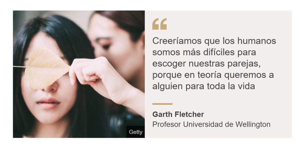 “Desde el punto de vista evolutivo, los juicios sobre la calidad de nuestras parejas deberían tener un grado de exactitud”, le dijo a la BBC Garth Fletcher, profesor emérito de psicología en la Universidad de Victoria de Wellington, en Nueva Zelanda.