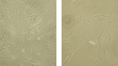 Células WI-38 (izquierda: en alta densidad, derecha: en baja densidad). Por Yuanyuan Li y Trygve O. Tollefsbol-