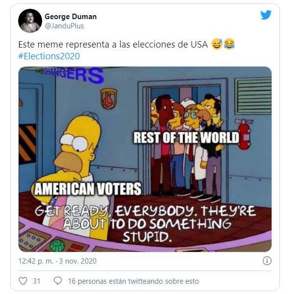 Conocer el resultado de las elecciones en EE. UU. puede llevar varios días y mientras se conoce el dato oficial, los cibernautas utilizan el humor.