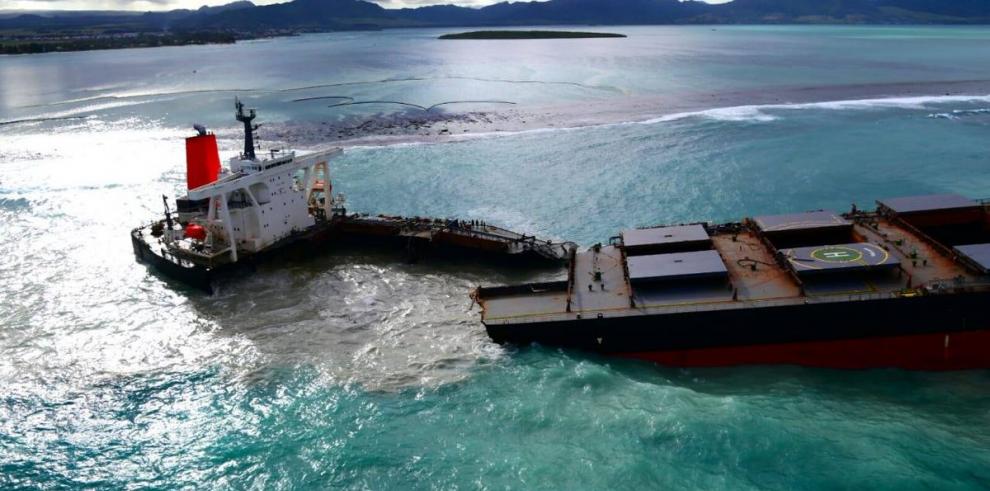 El buque varado desde el pasado 25 de julio en los arrecifes de Pointe d’Esny, frente a la costa sureste de Mauricio y que esparció en sus aguas 800 toneladas métricas de crudo, se partió este sábado en dos.