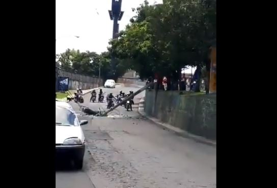 A parte, usuarios reportan en redes sociales de que un poste del tendido eléctrico cayó sobre un motorista en la calzada Atanasio Tzul.