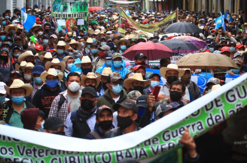 En la Plaza de la Constitución, decenas de militares retirados se han reunido y se prevé que caminen hacia el Congreso para pedir a diputados la aprobación de una ley con la que recibirían una indemnización por servicios prestados durante el conflicto armado interno.