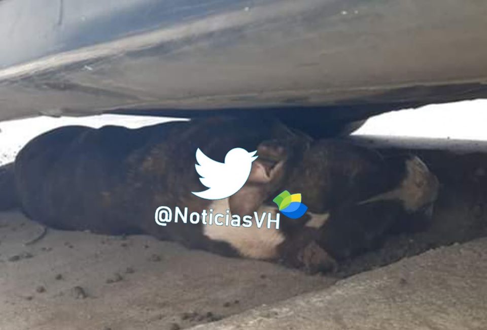 Un pitbull, que según comentaron los vecinos a los bomberos fue el que atacó al hombre, fue encontrado muerto debajo de un carro.