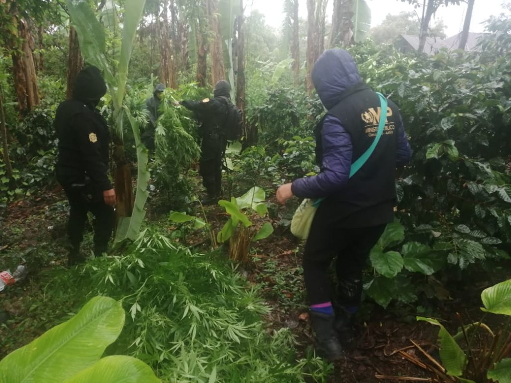 La diligencia ocurrió este 20 de marzo en la aldea Puente Alto. Agentes de la Fiscalía Distrital de Huehuetenango y la Subdirección General de Análisis de Información Antinarcótica de la PNC (SGAIA) encontraron y erradicaron cuatro mil 669 matas de marihuana.