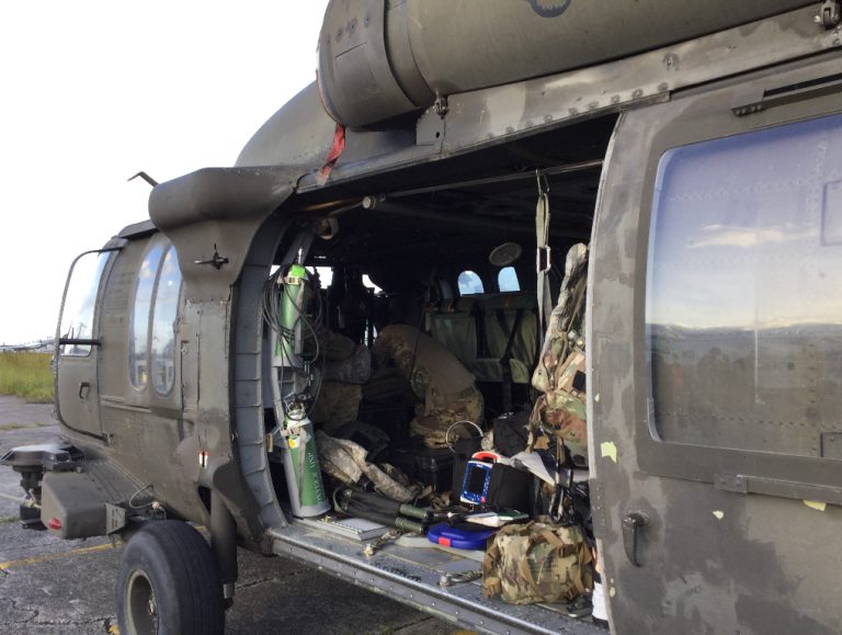 Los helicópteros son un HH-60 BlackHawk, para operaciones de búsqueda y rescate y el otro un CH-47 Chinook, que es capaz de entregar grandes volúmenes de suministros críticos.