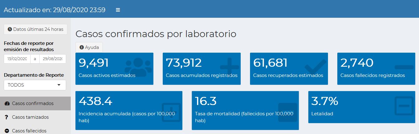 El tablero Covid-19 del Ministerio de Salud se actualizó a las 10.45 horas de este domingo 30 de agosto con los datos del 29 de agosto hasta las 23.59 horas.
