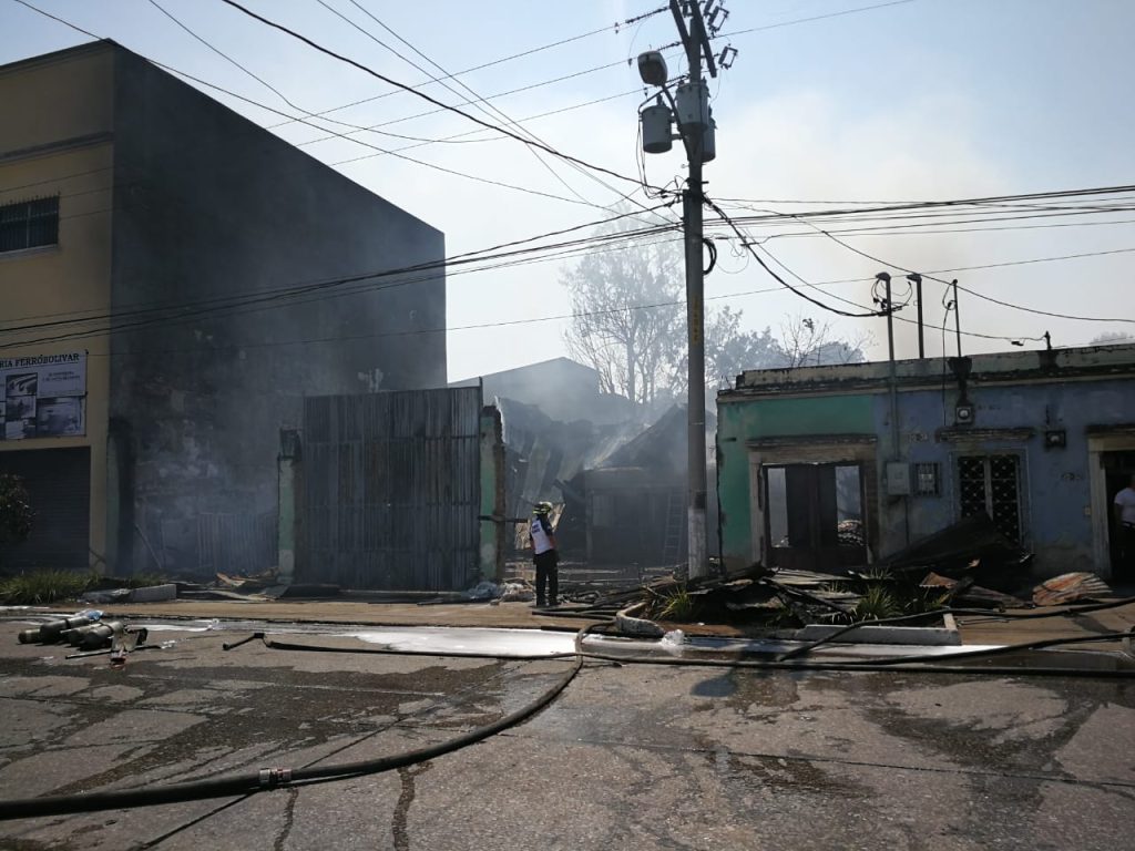 De acuerdo con información que les brindaron en el sitio, las llamas pudieron haberse producido por la reacción de los químicos (thinner y otros) que se almacenaban en una habitación.