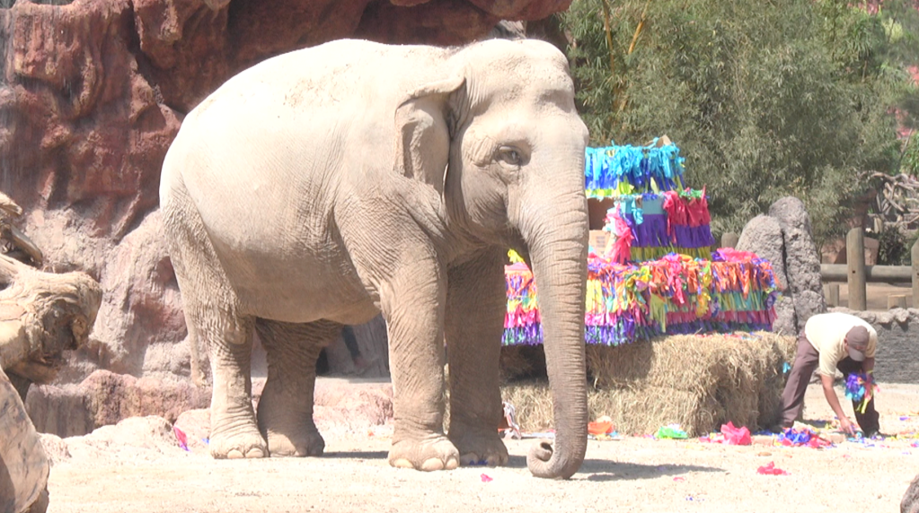 Trabajadores del Zoológico y visitantes del parque le cantaron muy fuerte el feliz cumpleaños a Trompita, la elefanta que llegó al Zoológico La Aurora en el 2008.