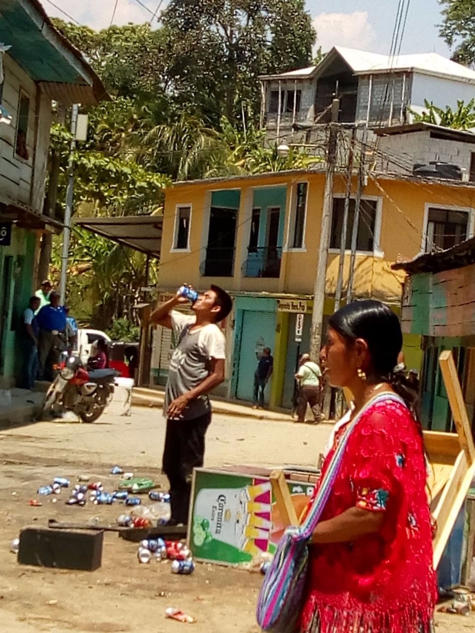 Hasta el momento el ambiente es tenso, ya que más de 50 personas recorren las calles del municipio para saquear y destruir los negocios, propiedad de Santiago Sacul.