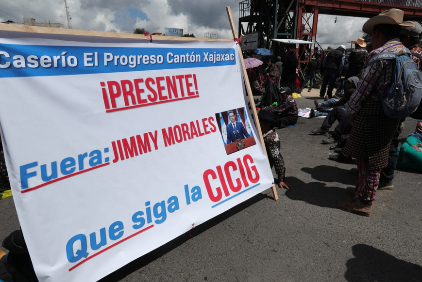 ¡Jimmy Morales renuncia ya! dicen manifestantes que bloquearon varios puntos en la ruta al Occidente para exigir la renovación del mandato de CICIG y la renuncia de Jimmy Morales a la presidencia.