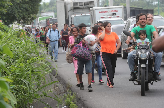 #TragediaVolcán | Pobladores del centro de Escuintla huyen por temor. Delegados de la Conred les informan que es una falsa alarma. ► https://t.co/jAzGMrdXuv