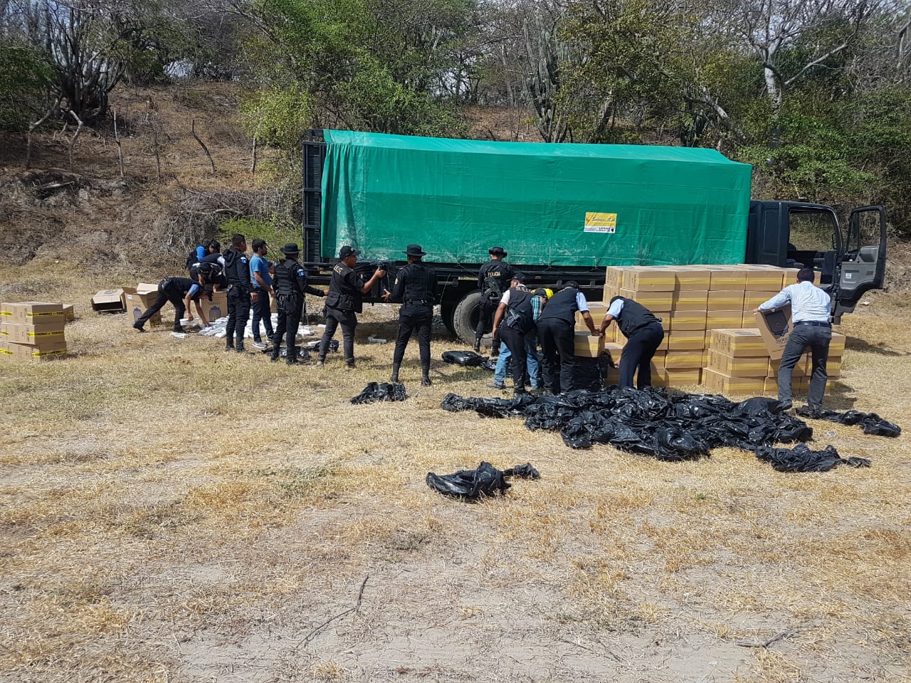 El camión que llevaba un gran cargamento de cigarros aparentemente de contrabando fue abandonado luego de que agentes de la PNC le realizaran el alto en el Km. 135.3 de la ruta al Atlántico.